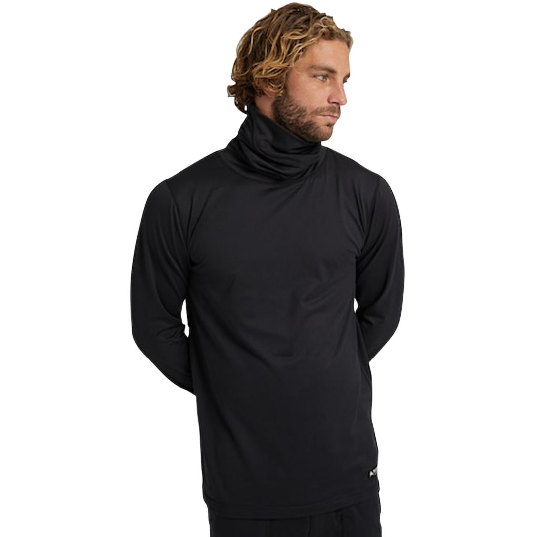 What makes the men's Burton Midweight Long Neck Shirt much more than a standard mid-layer is an ingenious collar that transforms into a neck warmer. Simply unfold it to chin height and the long neck design with breathable face panel adds critical protection against snow, sun, and wind. Below neck level, DRYRIDE Ultrawick Midweight fabric delivers all the function of a technical layer, while built-in stretch and softlock seams ensure comfort lap after lap. An extra-long body keeps it tucked when strapping in and a Agion® Stink-Proof finish prevents you from funking up the après spot.