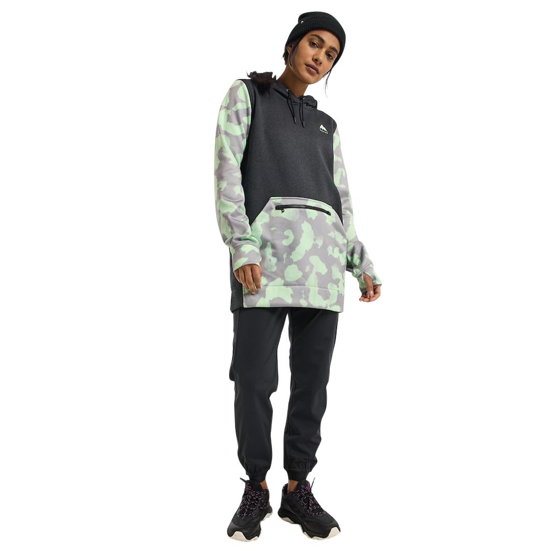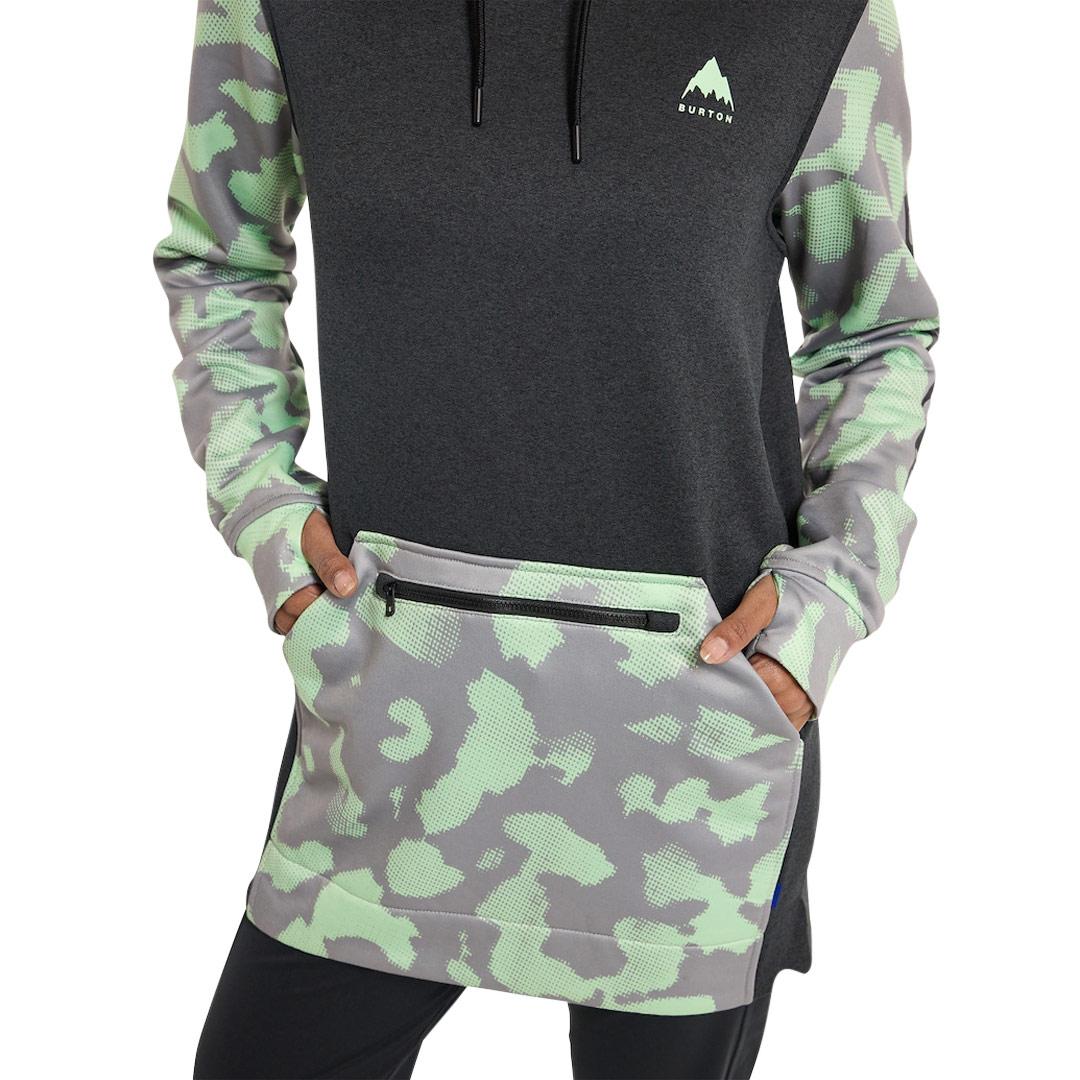 The women's Burton Oak Long Pullover Hoodie is a versatile and comfortable fleece hoodie that's perfect for staying warm and cozy wherever you go. Made from moisture-wicking and quick-drying polyester fleece, this hoodie keeps you comfortable and dry, making it ideal for outdoor activities or just lounging at home.