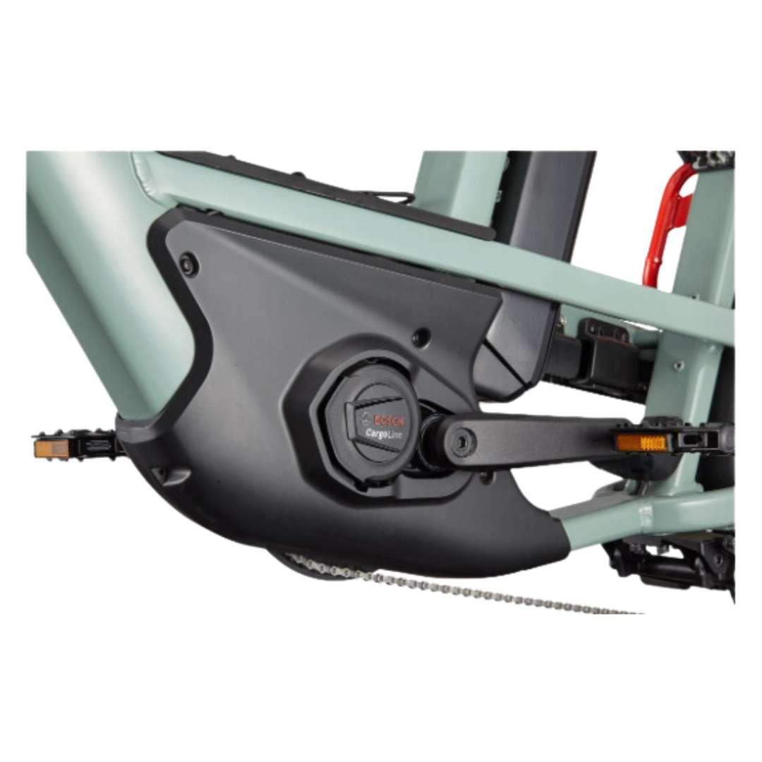 The Cannondale 2024 Electric Cargowagen Neo Bike - Sage is a versatile electric cargo bike designed for hauling heavy loads and transporting goods around town. It features a sturdy aluminum frame with a large cargo platform that can accommodate a variety of cargo, from groceries to bulky items. The bike is equipped with a powerful Bosch Performance Line CX motor that provides smooth and responsive pedal-assist up to 20mph, making it easy to carry heavy loads up hills and over long distances.