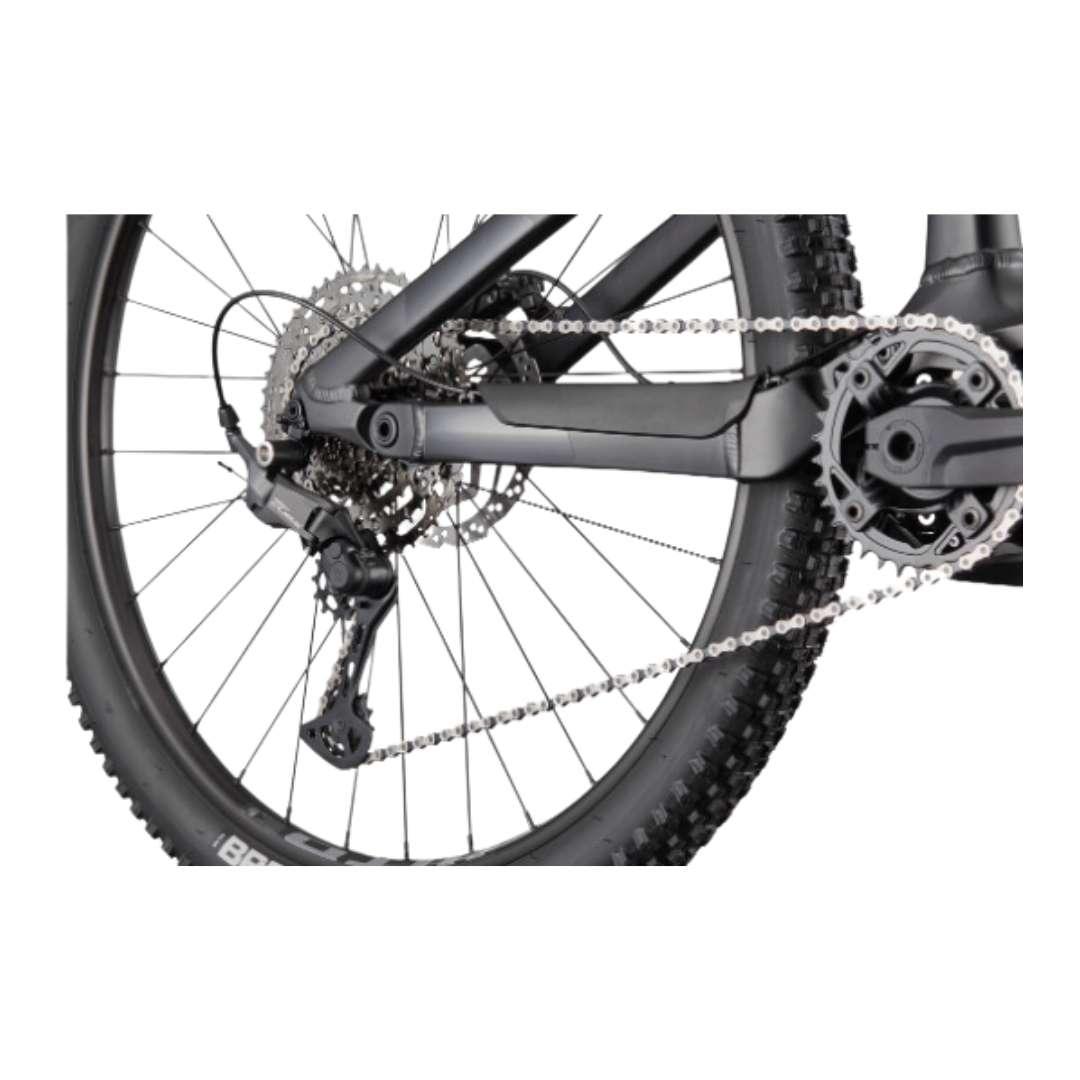 The Cannondale 2024 Moterra Neo S4 Electric Mountain Bike - Smoke Black is a high-performance electric mountain bike designed for adventurous riders seeking thrilling off-road experiences. Its durable aluminum frame is equipped with a powerful Bosch Performance Line CX motor and an integrated 625Wh battery, providing reliable pedal assistance for long rides over challenging terrain.
