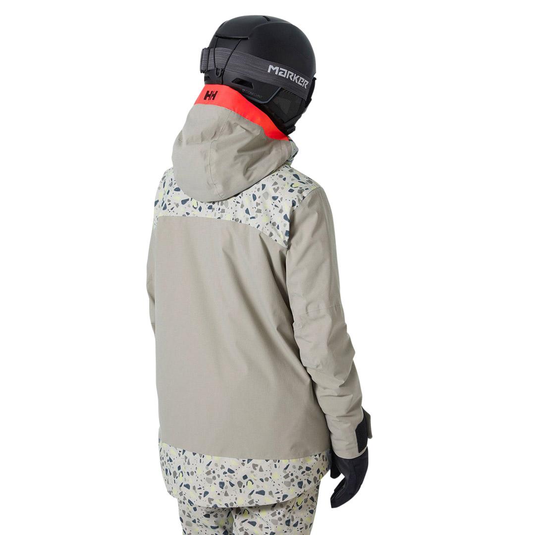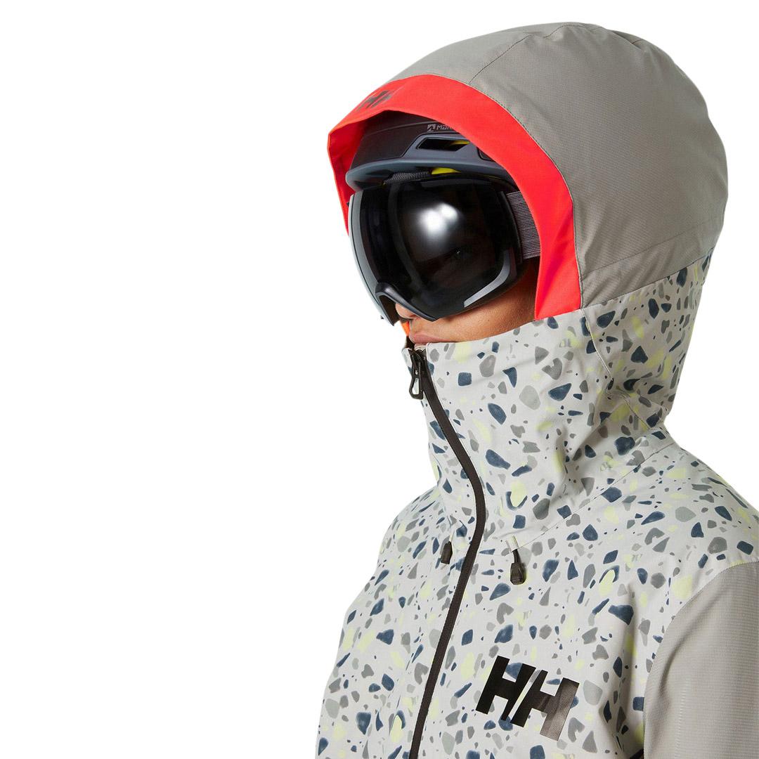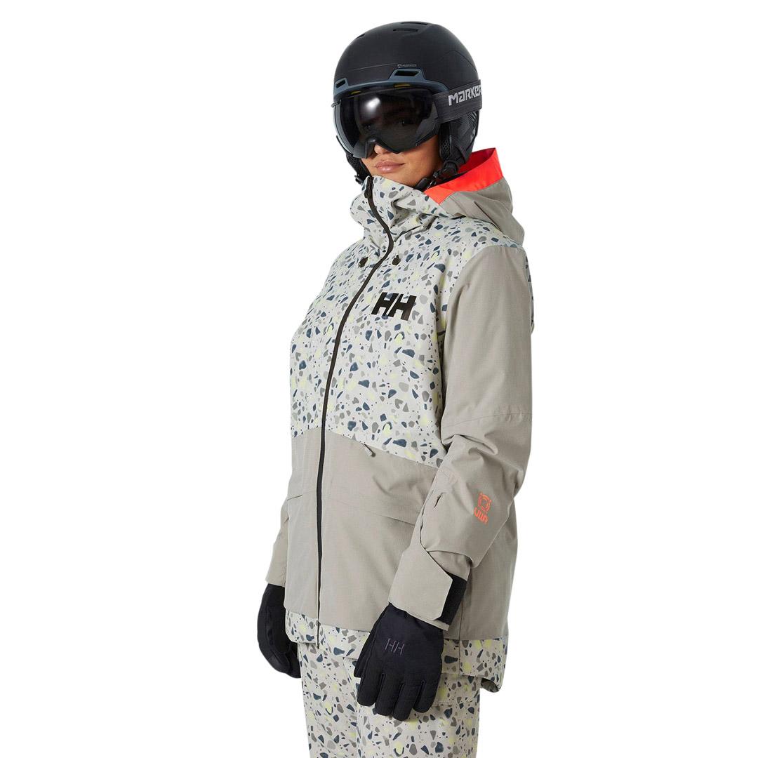 The Powchaser women's ski jacket is designed to excel on the slopes, offering a waterproof, breathable, and windproof construction with HELLY TECH® Performance 2-layer fabric. It's enhanced with light and warm PrimaLoft® Black Eco insulation, which is eco-friendly as it's crafted from recycled materials.