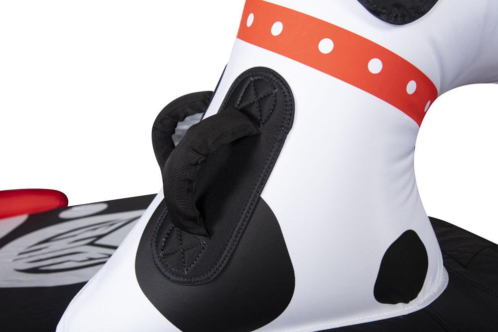 The Dog offers a versatile riding experience with its seating options. The center rider gets to enjoy a comfortable seated position on the deck of the tube, providing an excellent view of the surroundings and a thrilling ride. The outside riders can lay in the prone position on either side, adding an extra level of excitement as they skim across the water's surface.