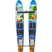 The HO Sports Hot Shot Trainers Waterskis are the ultimate learning tool for young, aspiring skiers. Designed with stability and safety in mind, this trainer set includes a trainer bar and tail connection to keep the skis at the proper distance apart, providing a solid and balanced platform for beginners. Bright, fun graphics make little skiers easy to spot in the water, while adjustable horseshoe bindings ensure a comfortable fit for a variety of kids’ foot sizes.
