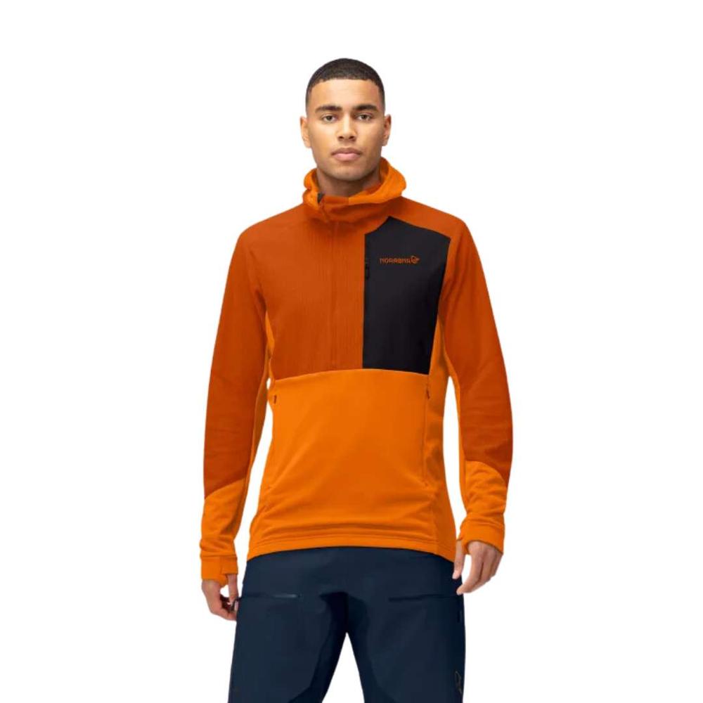 The Norrona Men's Lofoten Thermal Pro Hood Jacket is a versatile and highly functional midlayer designed for freeride skiing, snowboarding, and outdoor activities. Made with Polartec® fabrics, this jacket provides excellent thermal performance and comfort. The body of the jacket features Polartec® Power Grid™, which offers quick-drying and moisture-wicking properties, while the shoulders, neck, and sleeves are crafted from Polartec® Thermal Pro®, providing an exceptional warmth-to-weight ratio. This combination of materials ensures you stay warm and dry during your high-energy adventures in cold conditions.