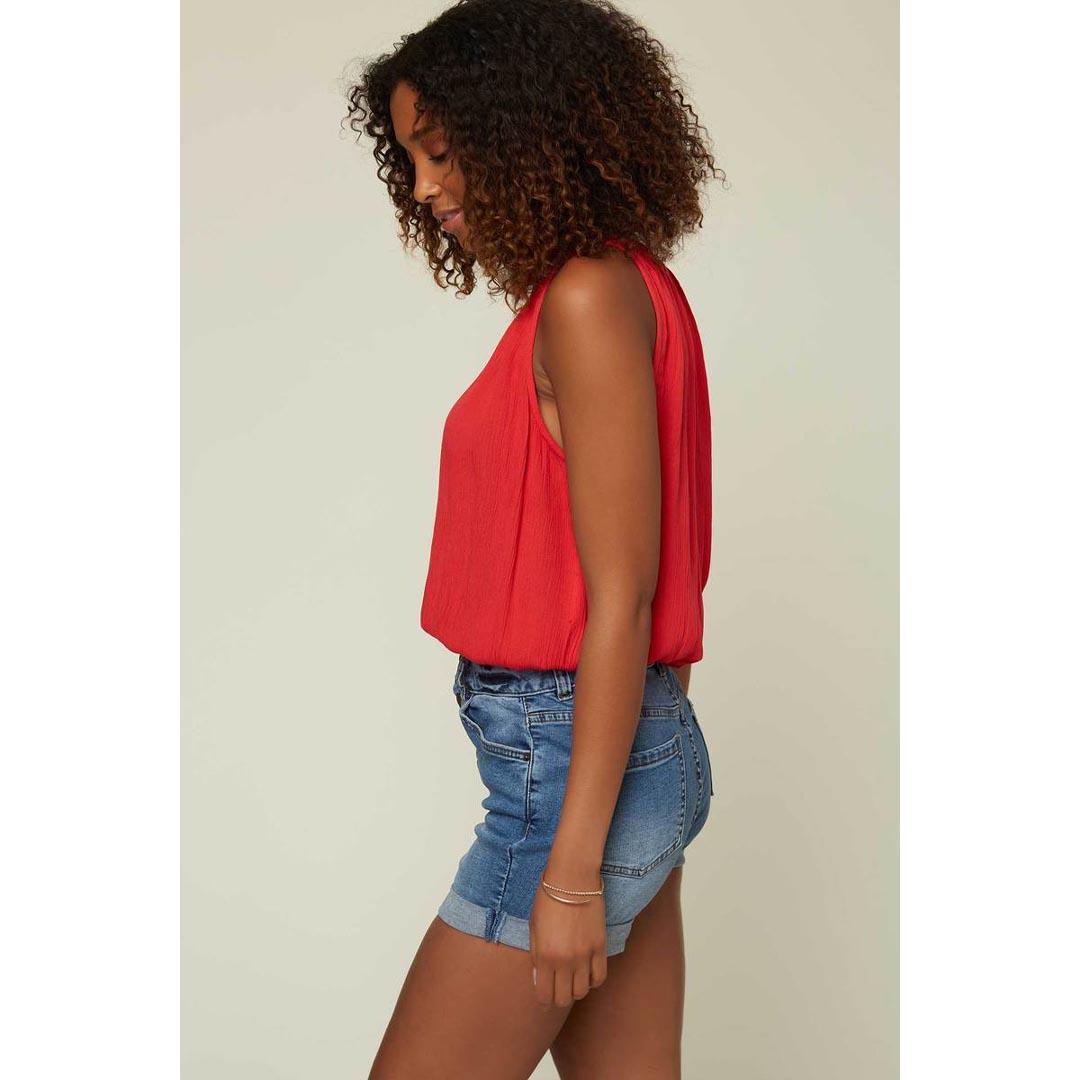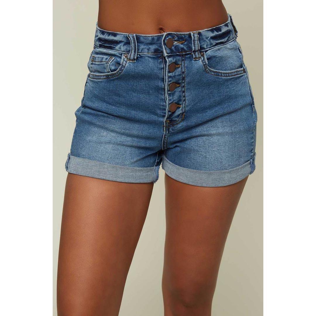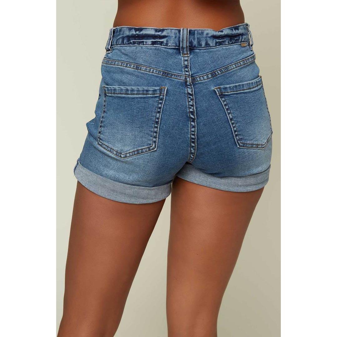 The O'Neill Women's Kelsey Denim Shorts is always a classic denim short that have a naturally distressed look and rolled hem design.