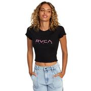 The RVCA Women's Balance Tee Shirt is a modern twist on a classic style. With its snug fit and lettuce edge hem, also known as baby ruffles, it adds a feminine touch to your wardrobe.