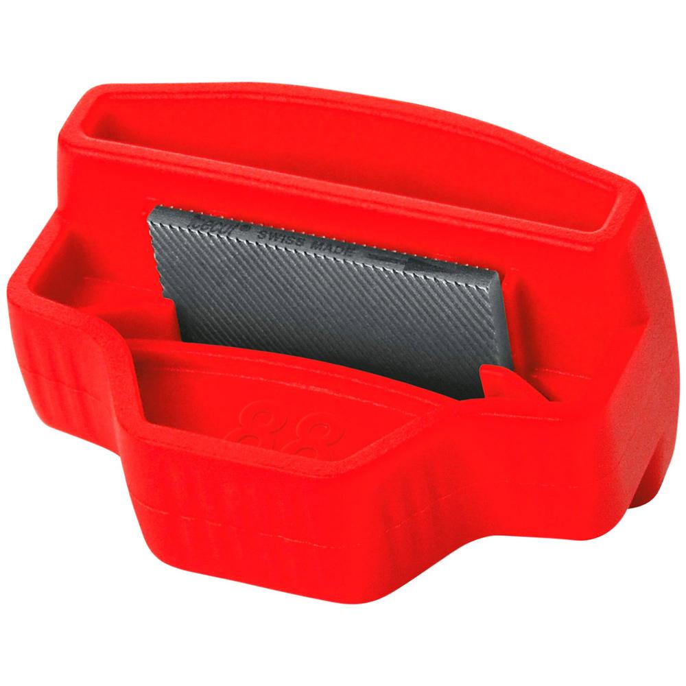 Side edge file guide in handy pocket size and ergonomic design for a secure grip. The side edge can be set to either 87 or 88 degrees. 40 mm quality file included