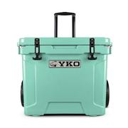 Featuring high-performance roto-molded construction, this 35-quart cooler offers exceptional durability and thick insulated walls for maximum temperature retention. The heavy-duty latches and airtight gasket seal lock in the cold, while the built-in drain plug makes cleanup a breeze. With a stylish seafoam colorway and a spacious design, the Yukon Outfitters 35qt Party Wagon Wheeled Cooler delivers the ultimate combination of convenience, capacity, and cooling power for any outdoor occasion.
