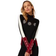 The Alp N Rock Allison Mock Neck blends elevated alpine style with everyday comfort, making it a standout layer for winter days and après-ski nights. Bold colorblocking, edelweiss-inspired embroidery, and a signature back patch give it a distinctive look, while the soft organic cotton and modal blend delivers warmth with a smooth, stretchy feel. Designed with a flattering mock neck and ribbed body, this pullover brings together fashion-forward details and durable construction for a polished cold-weather staple.