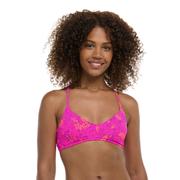 The Body Glove Puako Alani Bikini Top merges bold tropical flair with practical design for a standout swim look. Boasting a wide scoop neckline and supportive underband, it offers steady coverage with adjustable racerback straps that keep everything comfortably in place during swims or surf sessions. The removable soft cups provide subtle shaping and can be easily removed for a more relaxed beach vibe.
