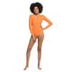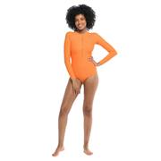 Crafted from smooth and stretchy swim fabric, this swimsuit effortlessly conforms to your body, ensuring a comfortable and flattering fit. The long sleeves offer added coverage and protection from the sun's rays, making it ideal for extended periods of outdoor activity.
