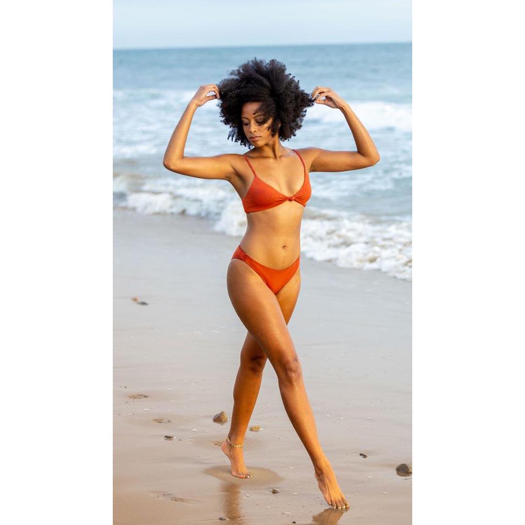 Literally a twist on the classic triangle bikini top for the classic girl next door! A no-fuss, all-around comfortable top designed for ease — you’ve just found your go-to.