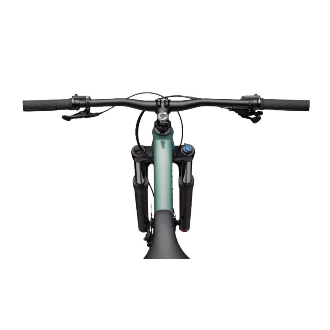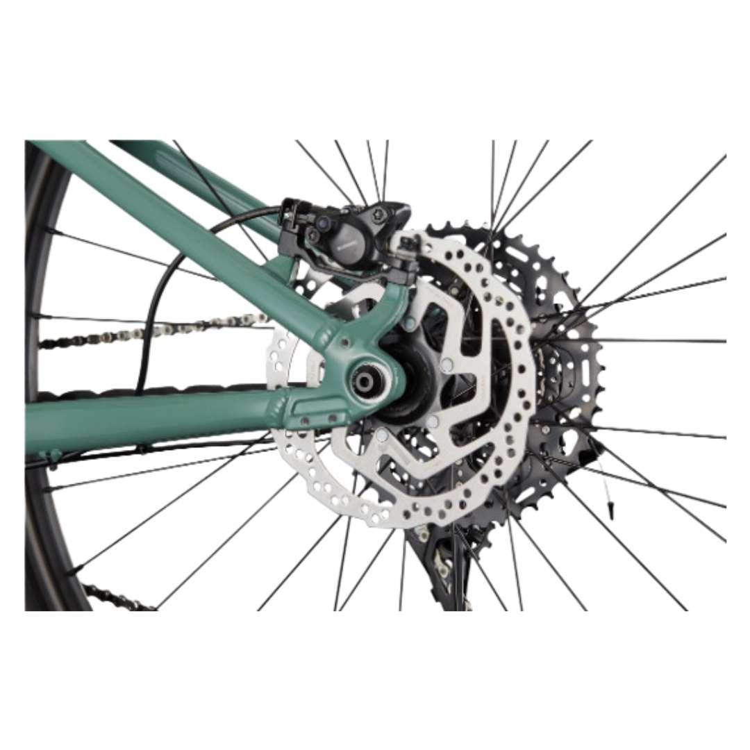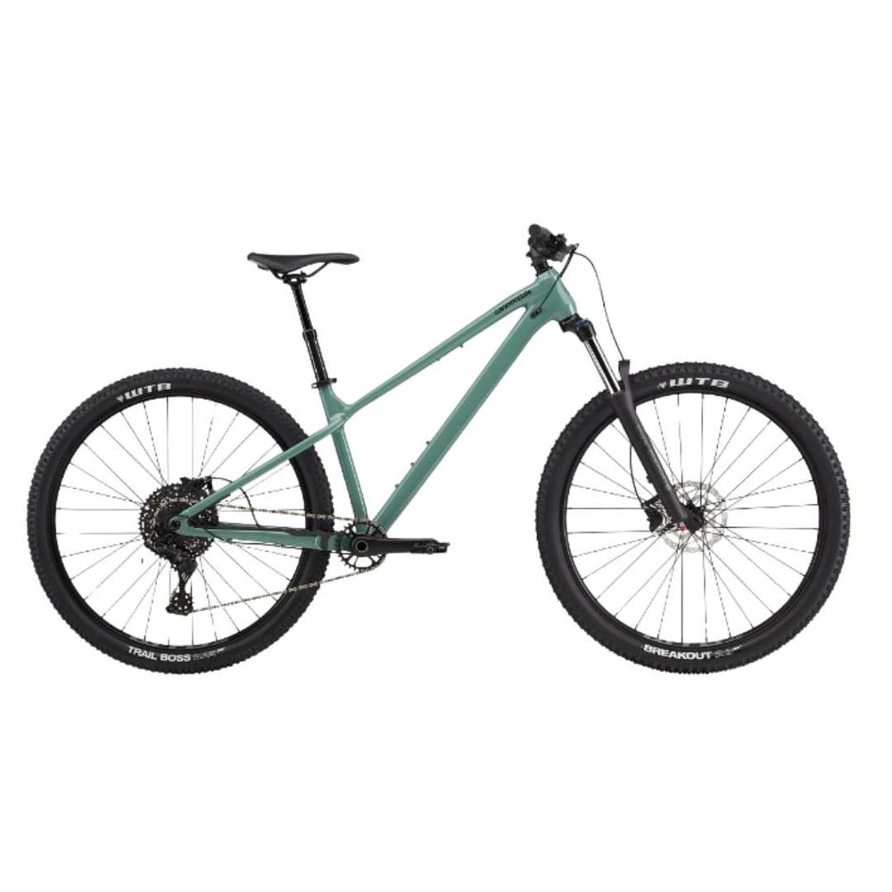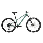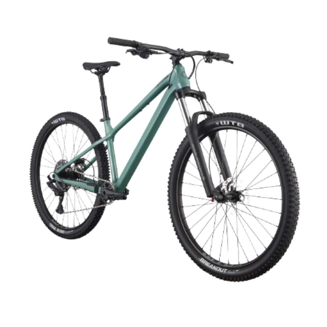 The Cannondale 2024 Habit HT 3 Mountain Bike - Jade is a hardtail mountain bike designed for cross-country and trail riding. It features a lightweight aluminum frame with a relaxed geometry for a comfortable and efficient riding position. The bike has a 100mm travel fork that helps absorb bumps and rough terrain, providing a smooth and controlled ride.