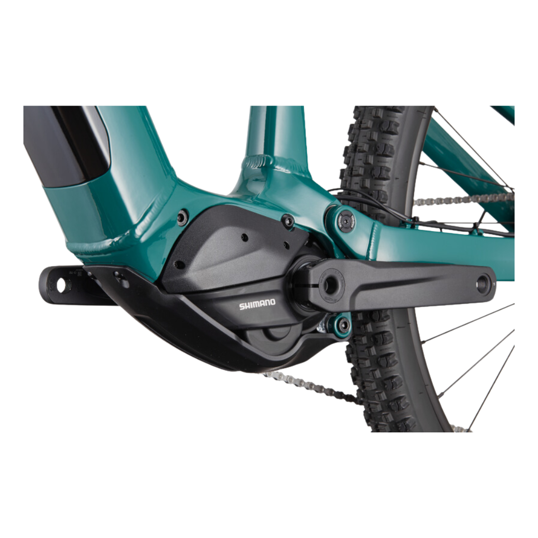 The Cannondale 2024 Moterra Neo S3 Electric Mountain Bike - Pine is a top-tier electric mountain bike designed for serious off-road enthusiasts. Featuring a robust aluminum frame with 160mm of travel, it offers exceptional stability and control on challenging terrain. The Bosch Performance Line CX motor and integrated 625Wh battery deliver powerful assistance, ensuring you can conquer steep climbs and ride longer distances with ease.