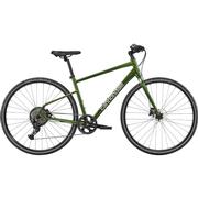 The Cannondale Quick 3 Bike is a lightweight hybrid designed for fitness riding, commuting, and everyday use. It features a SmartForm C3 alloy frame that offers a smooth and responsive ride. The Shimano Essa 1x8-speed drivetrain provides simple and reliable shifting, while MT200 hydraulic disc brakes deliver consistent stopping power. Schwalbe Spicer Plus tires are built for durability and efficiency on paved surfaces. A built-in phone mount and AppTag add convenience for tracking rides and staying connected on the go.