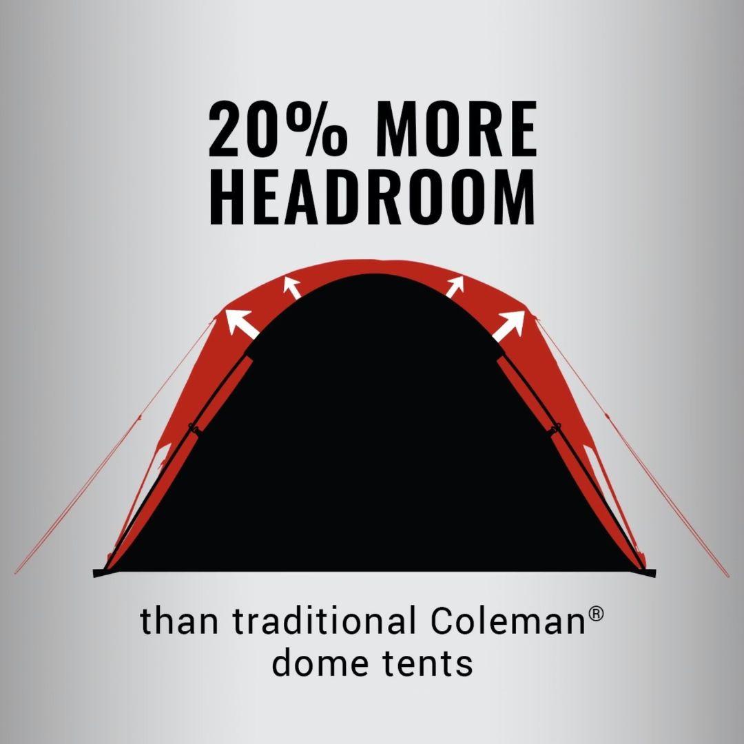 More headroom: Nearly vertical walls provide 20% more space than traditional dome tents