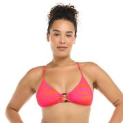 The Eidon Free Spirit Arlet Bikini Top is a fresh, textured take on the classic triangle silhouette—perfect for adding playful flair to your beach rotation. Crafted from a stretchy, recycled nylon-spandex blend printed with vibrant Free Spirit colors, this top features adjustable shoulder straps and a sleek straight-across cut that flatters the neckline. With removable soft cups and a secure tie-back, it offers both shape and ease, whether you're catching waves or lounging by the pool.