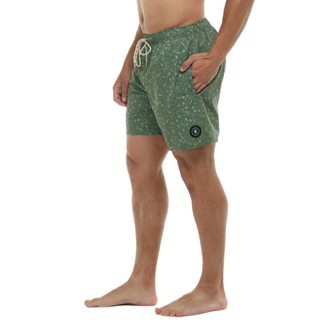 The Eidon Tiny Sea Volley Shorts are a go-to pick for active adventurers who crave comfort and performance in an eco-conscious package. Made from a stretchy recycled polyester and spandex blend, these mid-thigh shorts feature an elastic waistband with an external drawstring and mesh liner for comfort and support throughout your day—whether you're paddling, hiking, or lounging by the shore. Ventilating side leg vents and mesh-lined hand pockets add breathability and convenience without bulk.