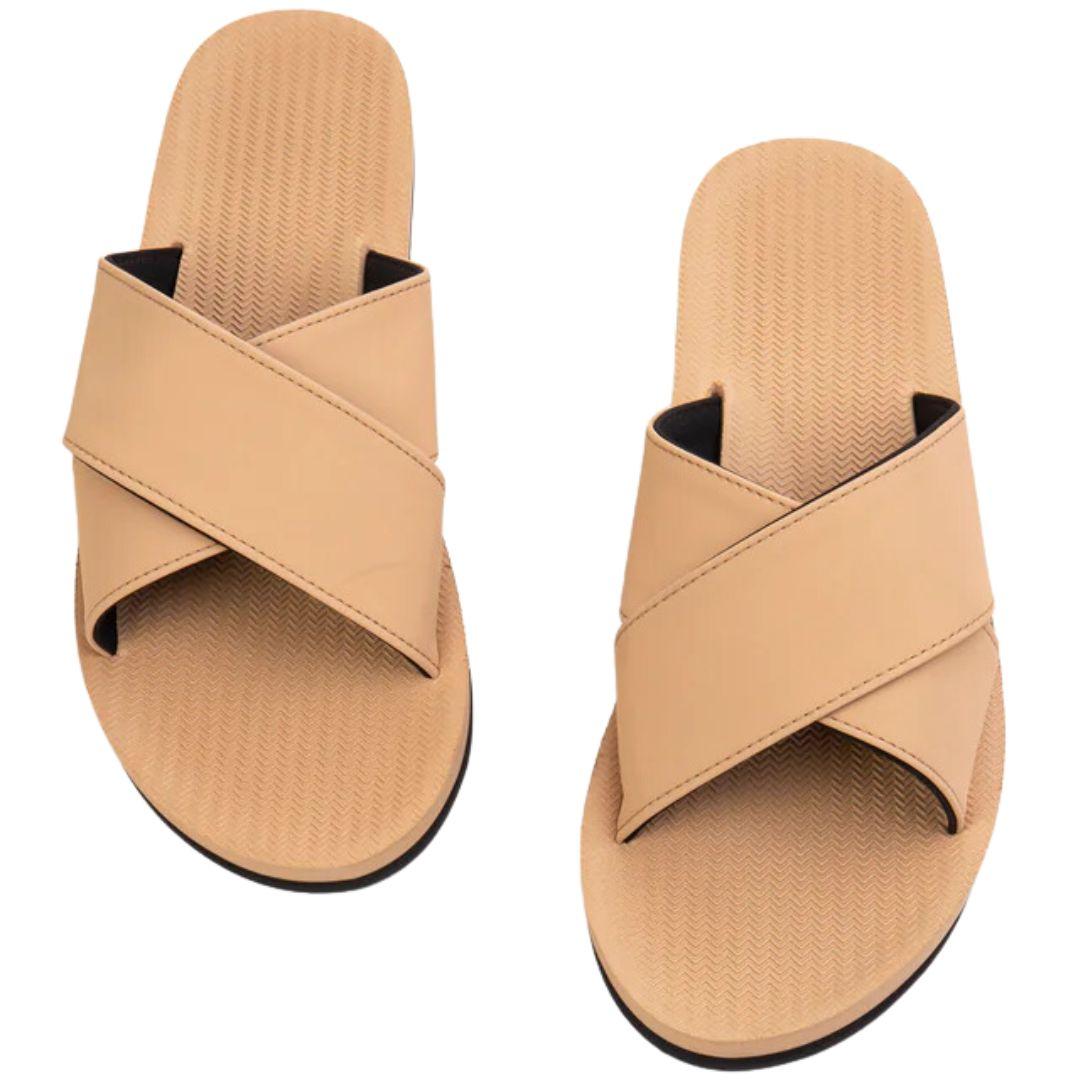 The footbed is contoured from natural rubber, providing ergonomic support and cushioning that molds to the shape of your foot with each wear, ensuring maximum comfort throughout the day. The soles are designed with a no-slip grip, making them ideal for both urban and beachside adventures. Lightweight and waterproof, the Cross Essentials Sandals are perfect for travel, easy to pack, and versatile for any setting. Whether you're heading to the beach, exploring city streets, or enjoying a casual day out, these sandals offer the comfort and conscious construction that modern consumers seek.