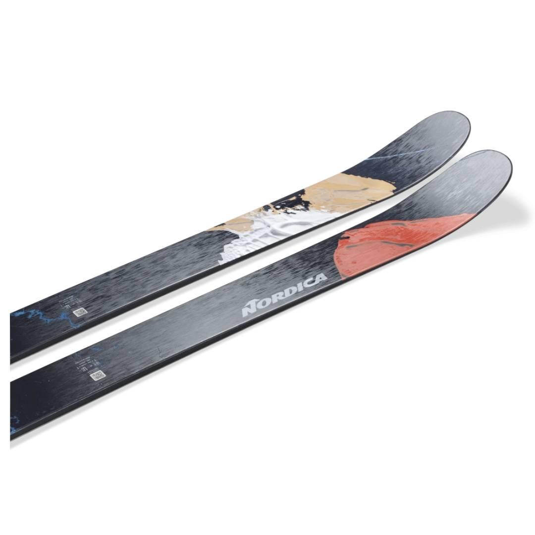 The ski’s modern freeride shape includes a slightly tapered tip and tail, which reduces tip drag and tail hang-up, enhancing maneuverability and control in deep snow. This design allows for fluid, natural turns and provides a playful, surfy feel that freeski enthusiasts love.