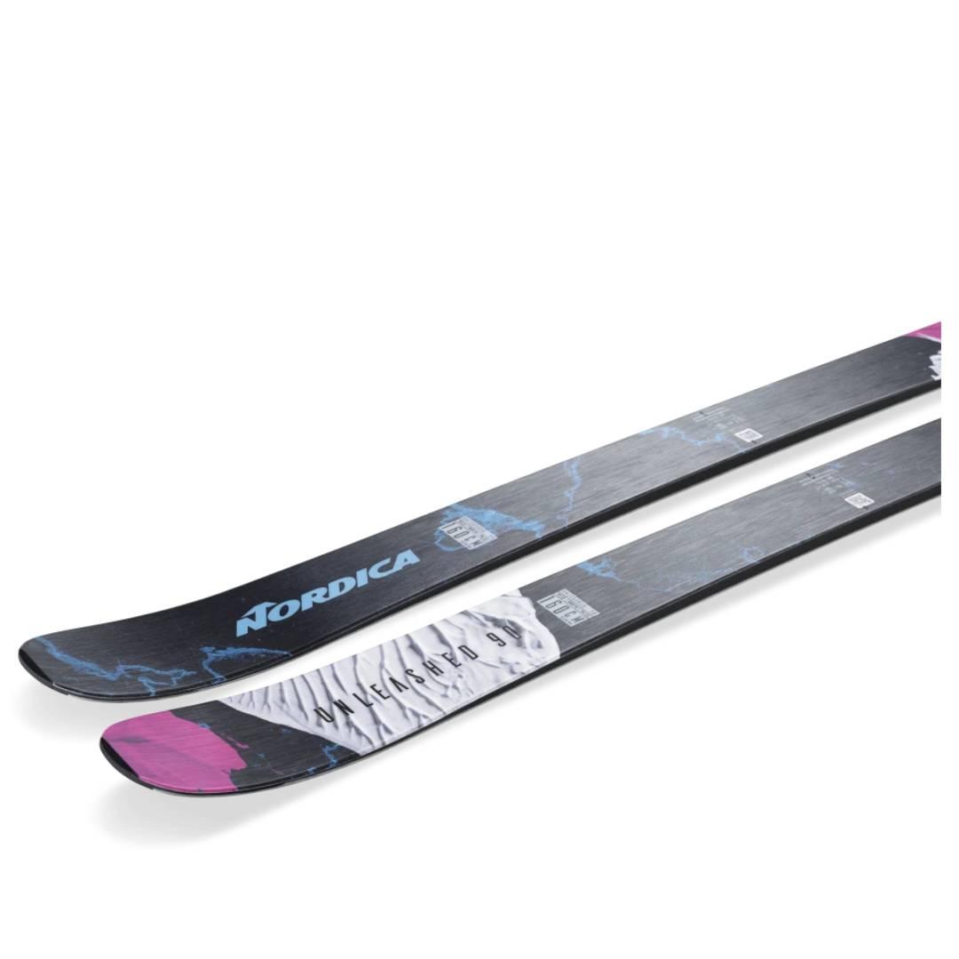 Built with Nordica's advanced construction, the Unleashed 90 features a lightweight wood core reinforced with carbon and a single sheet of terrain-specific metal. This construction provides excellent power and control, enhancing edge hold and stability while reducing vibrations. The ski’s design ensures a balanced flex, allowing for fluid transitions and precise turns, making it an ideal choice for all-day skiing.