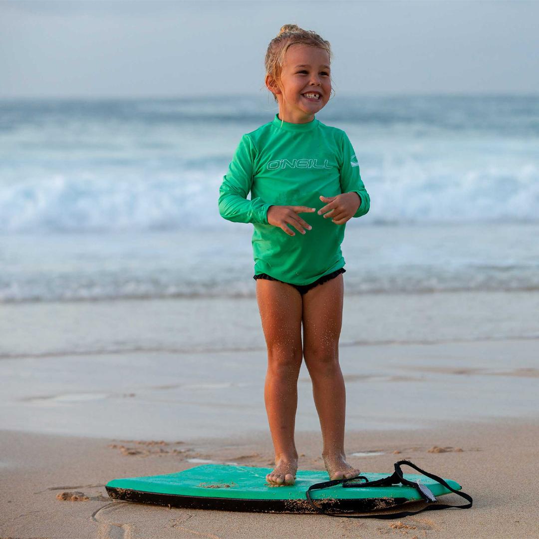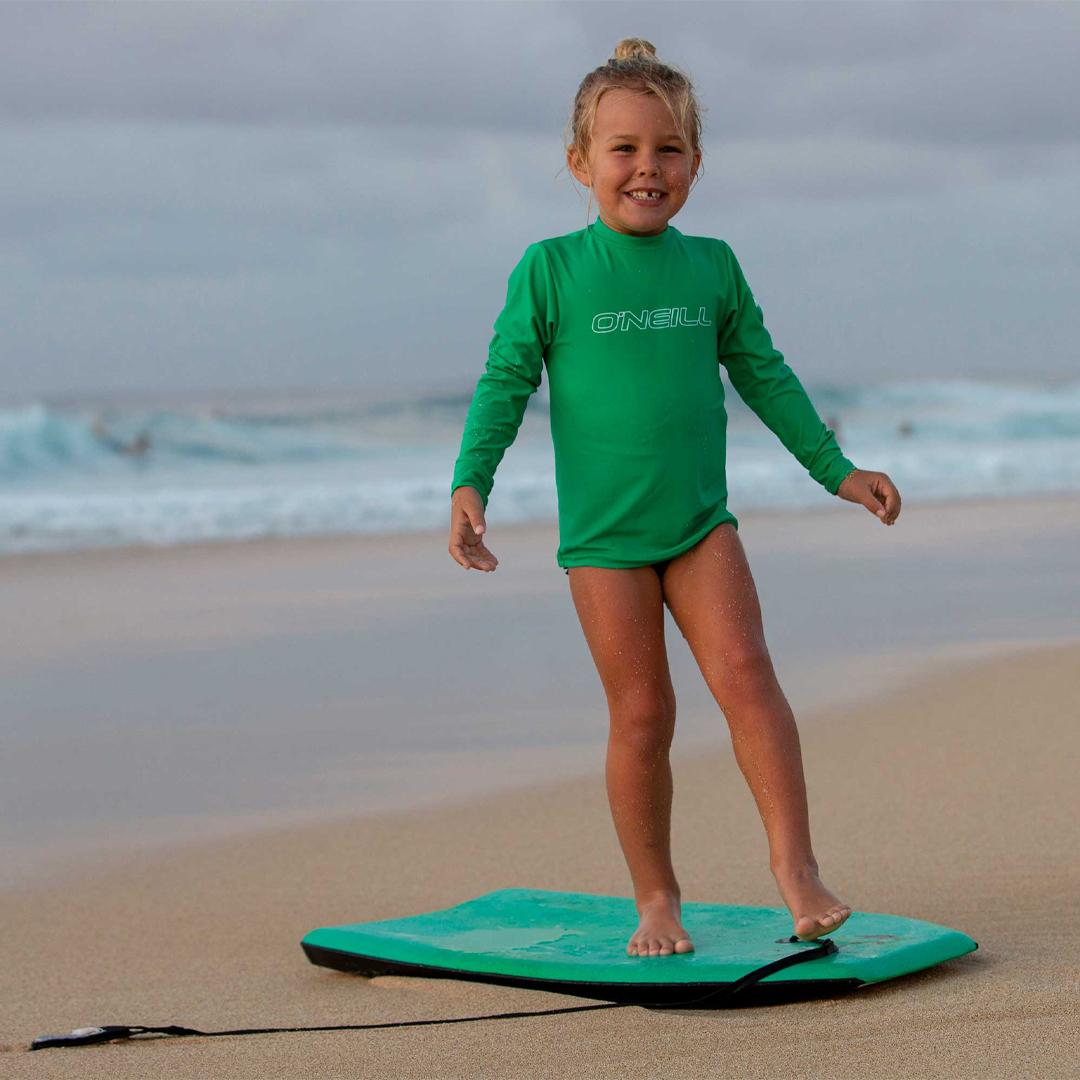 World-renowned O'Neill quality at value-driven prices. The Basic Skins offers U.P.F. 50+ Ultraviolet Protection with cleanly designed graphics and minimal seam placement for rash prevention.