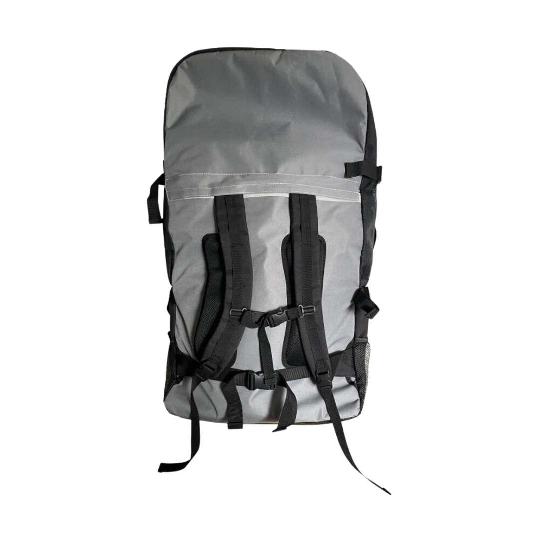 The bag features padded carrying handles and adjustable shoulder straps, allowing for comfortable and ergonomic transportation. Additionally, multiple compression straps help secure the kayak in place and reduce shifting during transport, while reinforced bottom panels offer added durability and stability.