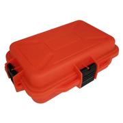 The Sunshine Mountaineering Survivor Dry Box - Orange is designed to protect essential items in rugged outdoor and emergency conditions. It features a water-resistant O-ring seal and triple latch system to help keep contents secure and dry. The durable construction is built to handle harsh environments, while added features like a built-in compass and signaling mirror provide extra utility in survival situations. The box is also buoyant and lockable, making it suitable for storing items such as first aid supplies, tools, electronics, or other small valuables during outdoor adventures or emergency preparedness.